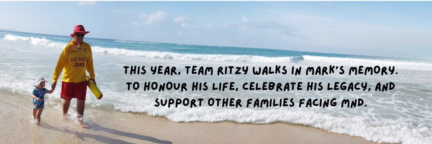In 2025, more than 70 participants walked for Mark in the Walk to Defeat MND on the Gold Coast. A second Team Ritzy also walked for him in Cairns in July 2025. Together, both teams raised more than $11,000 and received several awards.